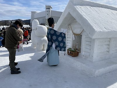 犬っこまつりは、約400年の歴史がある湯沢地方の冬の民俗行事です。旧小正月に雪のお堂や犬っこ像をつくり、厄除け・安全祈願を行います。